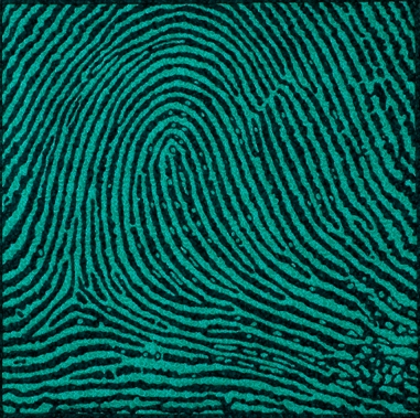 Fingerprint #41: Green Thumb 42” x 42” Preprinted cotton whole cloth reverse applique, machine stitched and quilted. (Click image for larger view) Green Thumb Detail |